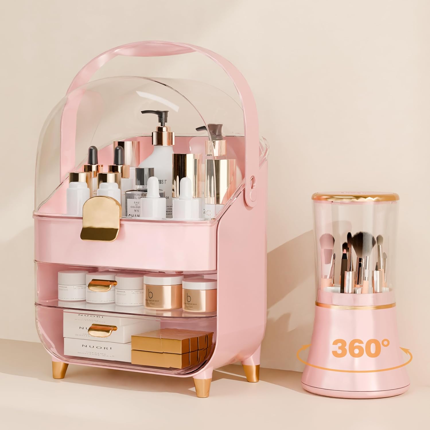 Designed by Plukers, this organizer features a large 3-tier storage capacity, a 360° rotating brush holder, and a dust-proof design. It’s perfect for anyone who wants to keep their makeup and skincare products neatly arranged and easily accessible.